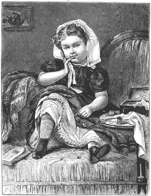 Mary is a good little girl, but is meddlesome. She has a good Grandmother, called Mrs. Mason, and she sometimes goes to her house. One day Mary got into mischief. Seeing her Grandmother's spectacles on the table, she put them on her nose, and said, "I'm Grandmother." Mary began to march about the room in a very grand way. Presently the spectacles fell off, and the glasses were broken. Poor Mary cried bitterly, and at first did not know what to do; but when Mrs. Mason came in, she told her all, and promised never to play "Grandmother" again. Mrs. Mason told her not to cry, and she might play "Grandmother" as much as she liked, but she was to be very careful not to take her spectacles, and she would get her papa to get a pair of tin ones, with holes in them, so that she could see as well, and look all the funnier.