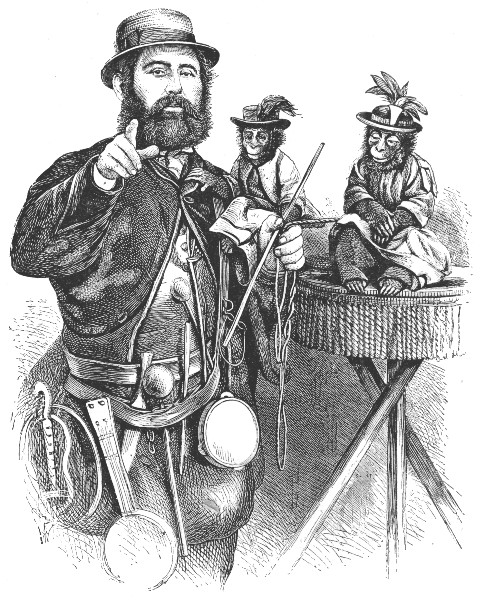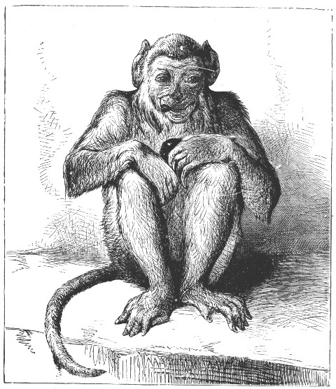 Amusing creatures! I can look at the picture with pleasure, because they are evidently well treated, and have not the miserably cowed expression we see upon many of the monkeys that go about our streets. Sometimes when I have given a monkey a piece of cake or fruit, I have made a bargain with the master to let him sit still and eat it, and much amused I have been watching the little animal's extreme enjoyment of the treat and the holiday. The monkeys at the Zoological Gardens have tolerably large cages. I wish the parrots were as well off: they sadly need more space, and would be glad of bits of stick to play with.