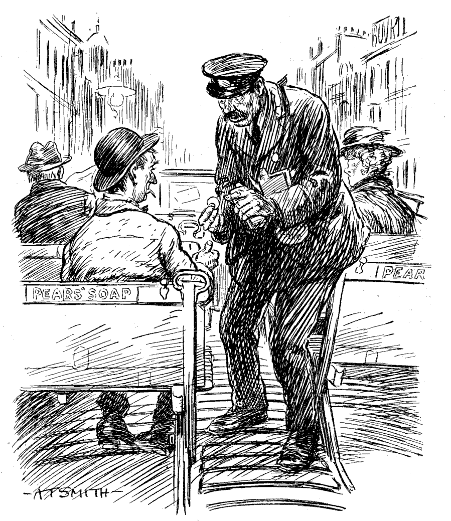 A Thames bargee was knocked down by a taxi-cab at Kingston-on-Thames last week. A well-known firm has offered to publish his remarks in fortnightly parts.