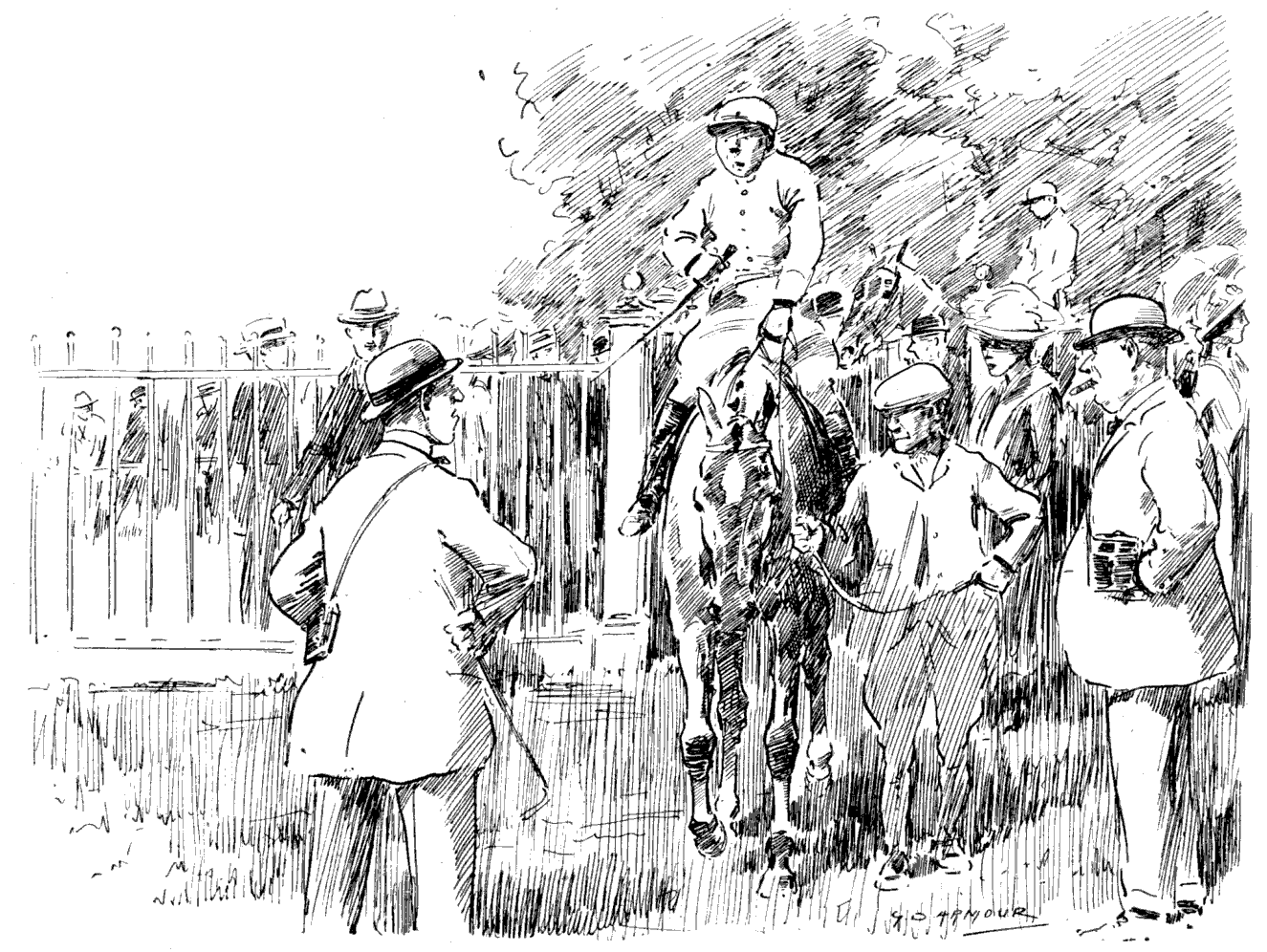 Trainer (to Irish apprentice who has finished among the "also ran"). "Why didn't you hang on to the favourite? Didn't I tell you you were the only one he was afraid of."