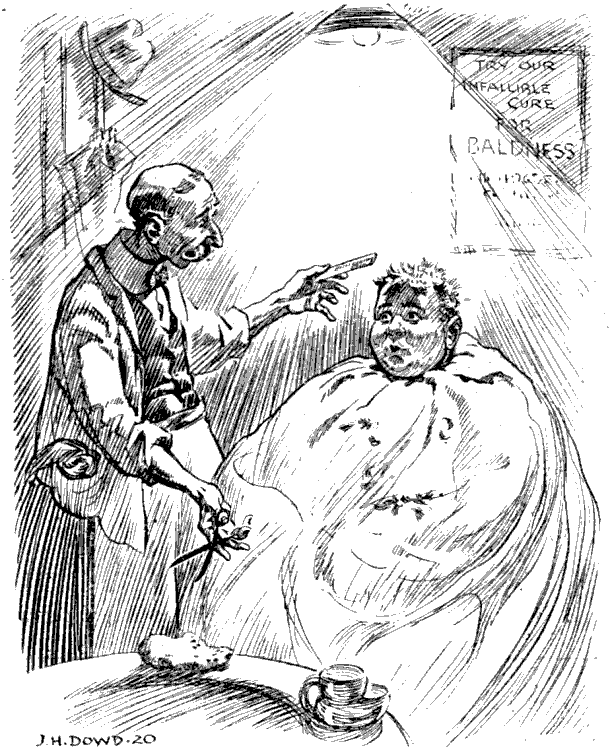 Barber. "Think of 'im, Sir? With a mop of 'air like 'e's got—a nice example to the nation!"