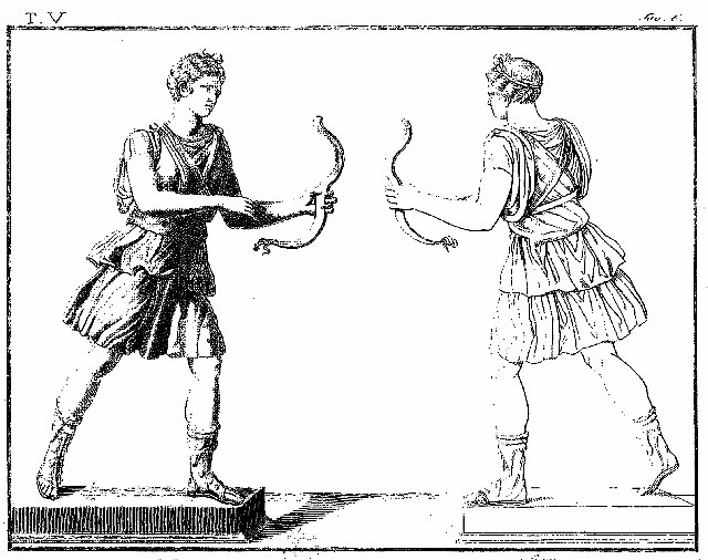 FIG. II. Apollon tenant son carquois fermé et son arc débandé, signe de clémence et de faveur, comme nous avons déjà eu occasion de l'observer ailleurs.