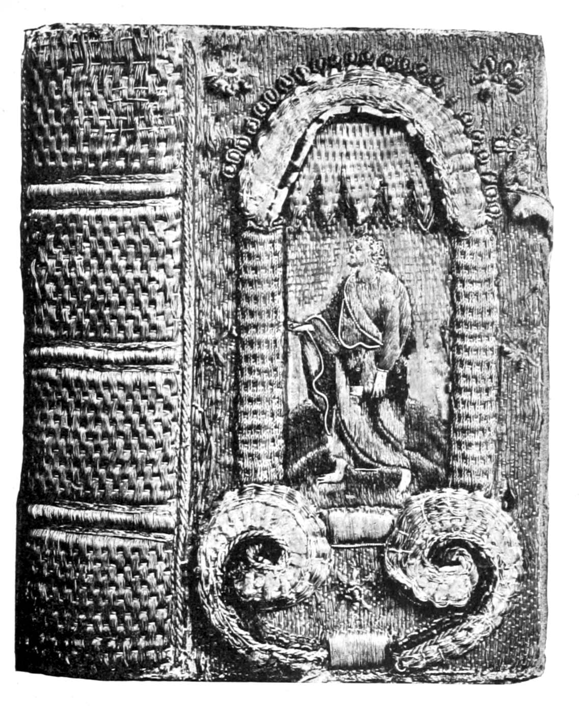 One of the most curious embroidered satin bindings still left is now in the Bodleian Library, and a slightly absurd tradition about it says that the figure of David, which certainly is something like Charles i., is clothed in a piece of a waistcoat that belonged to that king.