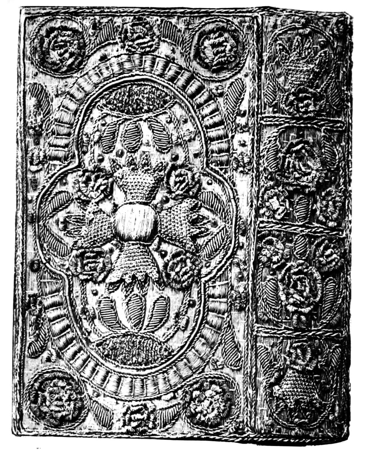 The book is in excellent condition, owing, no doubt, to the fact that most of it is in metal, but it is representative of the lowest level to which the art98 of the embroidered book in England has ever fallen.