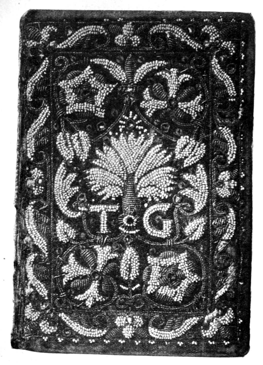This little book is certainly one of the most ornamental specimens of any of the smaller satin-bound books of the seventeenth century, and although here and there some of the pearls are gone, altogether it is in very good condition, and it is rarely that such a fine example can now be met with in private hands.