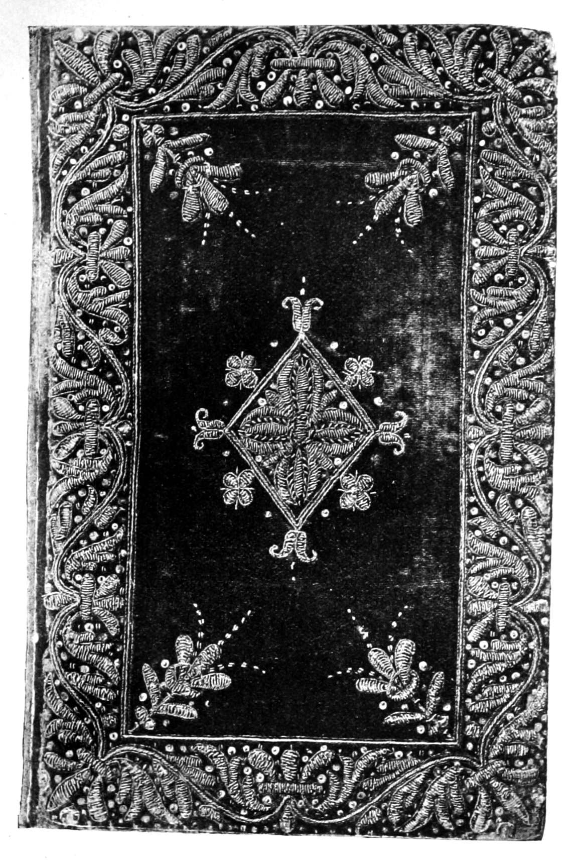 If this book of Archbishop Parker's is one of the most elaborately ornamented embroidered books existing, and perhaps one of the greatest treasures of its kind in the British Museum, the next velvet book to describe is one of the simplest, yet it also is one of the greatest treasures of its kind at the Bodleian Library.