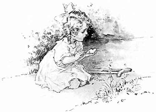 Upon a time walked she in a full fair garden, and there went with her an handmaiden that we did call in merry wise the Queen of Sheba; for this handmaiden was in sooth no queen at all, but a sorry and ill-favored wench; but she was assotted upon our little Mistress Merciless and served her diligently, and for that good reason was vastly beholden of us all. Yet, in a jest, we called her the Queen of Sheba; and I make a venture that she looked exceeding fair in the eyes of our little Mistress Merciless: for the eyes of children look not upon the faces but into the hearts and souls of others. Whilst these two walked in the full fair garden at that time they came presently unto an arbor wherein there was a rustic seat, which was called the Siege of Restfulness; and hereupon sate a little sick boy that, from his birth, had been lame,[88] so that he could not play and make merry with other children, but was wont to come every day into this full fair garden and content himself with the companionship of the flowers. And, though he was a little lame boy, he never trod upon those flowers; and even had he done so, methinks the pressure of those crippled feet had been a caress, for the little lame boy was filled with the spirit of love and tenderness. As the tiniest, whitest, shrinking flower exhaleth the most precious perfume, so in and from this little lame boy's life there came a grace that was hallowing in its beauty.