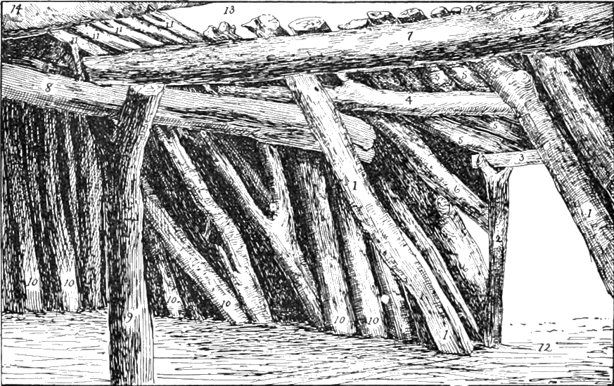 14. tcĭlégi nanaái—smoke-hole timber. The same term is applied to the timber marked 7 in the figure. |