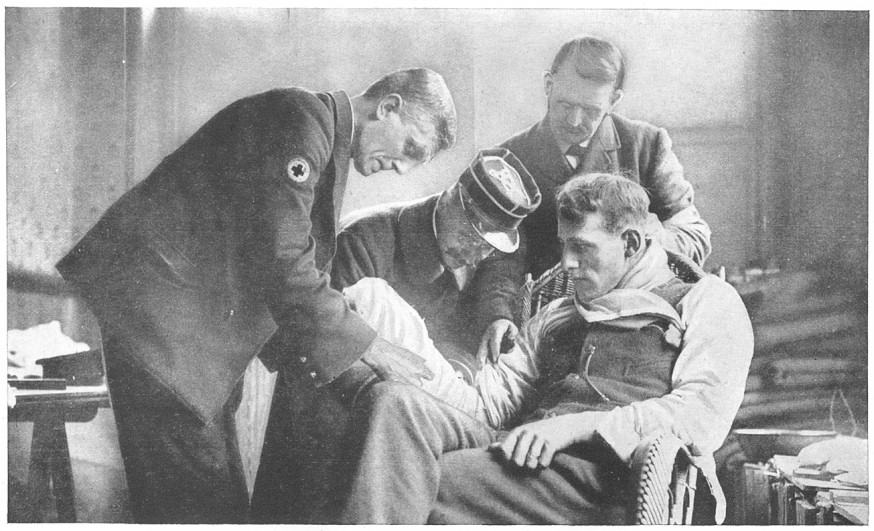 RED CROSS DOCTOR DRESSING AVIATOR'S WOUNDS