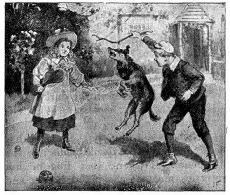 8. 'That is because we have been kind to him. Hi, good dog!' and Dora threw her ball to the very end of the garden, and watched her new friend run after it.[Pg 14]