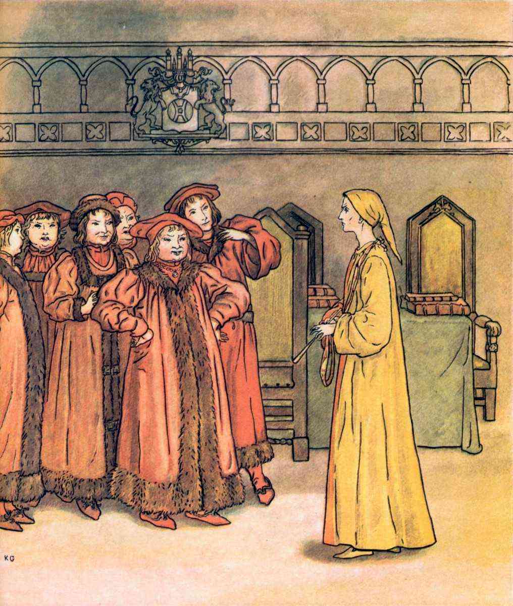 Alas, alas for Hamelin! There came into many a burgher's pate A text which says that Heaven's gate Opes to the rich at as easy rate As the needle's eye takes a camel in! The Mayor sent East, West, North, and South, To offer the Piper, by word of mouth, Wherever it was men's lot to find him, Silver and gold to his heart's content, If he'd only return the way he went, And bring the children behind him. But when they saw 'twas a lost endeavour, And Piper and dancers were gone for ever, They made a decree that lawyers never [Pg 46]Should think their records dated duly If, after the day of the month and year, These words did not as well appear, "And so long after what happened here On the Twenty-second of July, Thirteen hundred and seventy-six:" And the better in memory to fix The place of the children's last retreat, They called it, the Pied Piper's Street— Where any one playing on pipe or tabor, Was sure for the future to lose his labour. Nor suffered they hostelry or tavern To shock with mirth a street so solemn; But opposite the place of the cavern They wrote the story on a column, And on the great church-window painted The same, to make the world acquainted How their children were stolen away, And there it stands to this very day. And I must not omit to say That in Transylvania there's a tribe Of alien people that ascribe The outlandish ways and dress On which their neighbours lay such stress, To their fathers and mothers having risen Out of some subterraneous prison Into which they were trepanned Long time ago in a mighty band Out of Hamelin town in Brunswick land, But how or why, they don't understand.