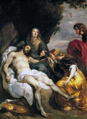 15. The Lamentation over Christ. Painted about 1629 for the church of the Béguinage at Antwerp. Now in the Antwerp Museum. Size: 9 ft. 11 in. by 7 ft. 4 in. Cust, pp. 66 and 248.