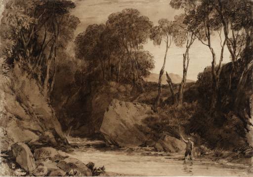 97. And now you will see at once with what feeling Turner completes, in a more tender mood, this lovely subject of his Yorkshire stream, by giving it the conditions of pastoral and agricultural life; the cattle by the pool, the milkmaid crossing the bridge with her pail on her head, the mill with the old millstones, and its gleaming weir as his chief light led across behind the wild trees.
