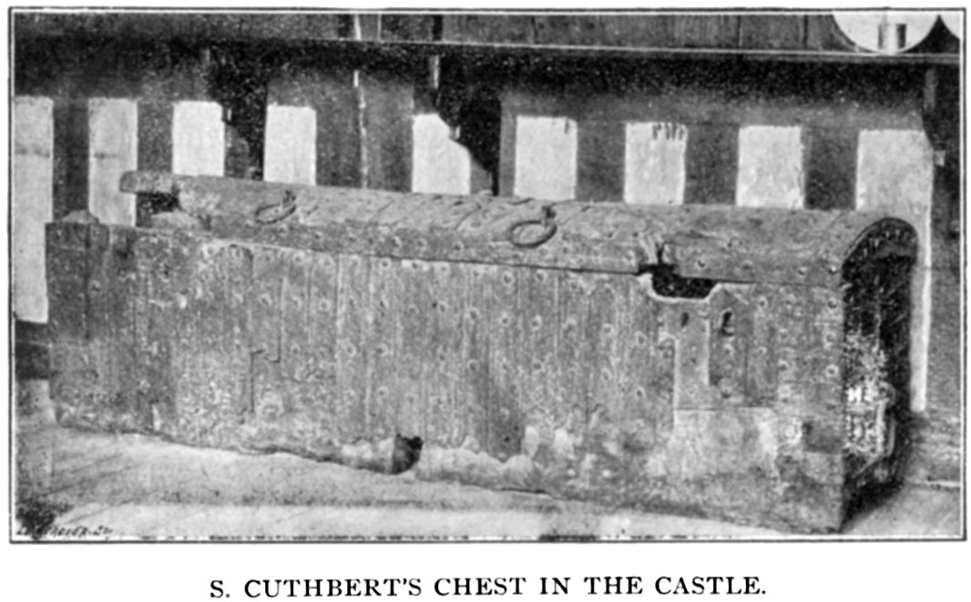 Whatever may be the truth of this, his body was placed in a wooden coffin, portions of which are still preserved in the chapter library at Durham.