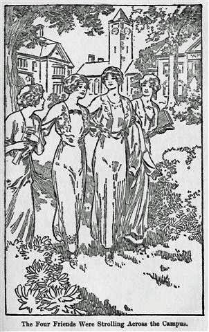 "Coming," called Miriam, springing from the edge of the bed, where she had sat to put on her slippers, and hastily adjusting her cap. In the next instant the four friends accompanied by Emma Dean were hurrying across the campus to the gymnasium, where the senior class were to meet, then proceed in a body to the chapel, where the commencement exercises were to be held.