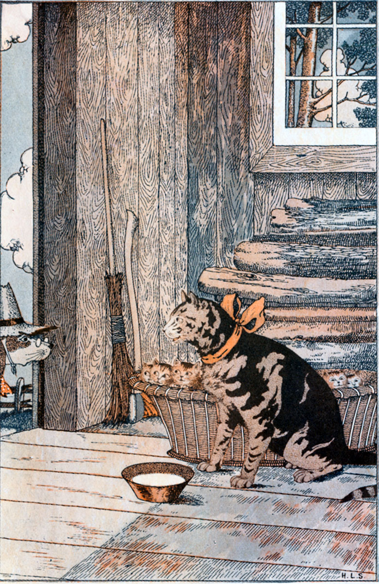 The rats and the mice thought that Miss Kitty Cat was a terrible person. She was altogether too fond of hunting them. They agreed, however, that in one way it was pleasant to have her about the farmhouse. When she washed her face, while sitting on the doorsteps, they knew—so they said!—that it was going to rain. And then Mrs. Rat never would let her husband leave home without taking his umbrella.