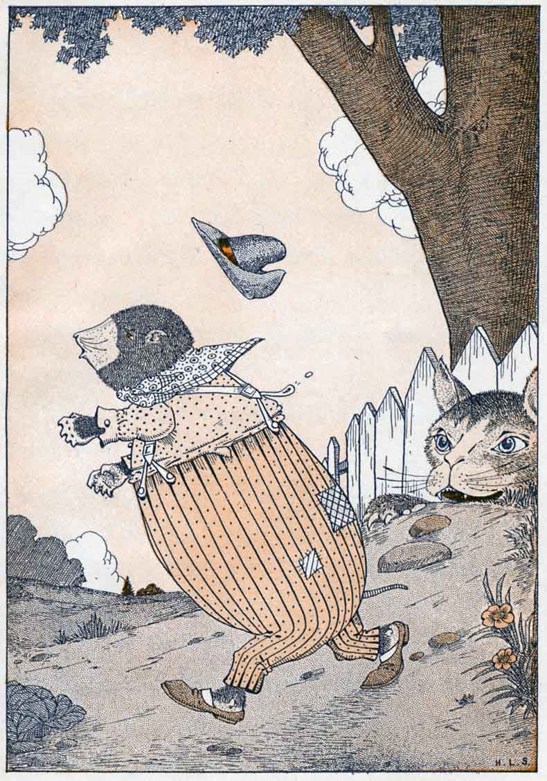 Grandfather Mole struggled to escape. And his captor let him go, to give herself the pleasure of pouncing upon him again. She knew well enough that he couldn't get away from her. He could run quite spryly for an old gentleman—it is true. But when he couldn't see where he was going, of what use was running?