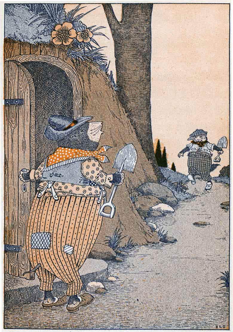 Liking to dig as he did, he certainly had nothing to complain about. His long nose was as good as a drill. And his front legs were just long enough so that he could reach his large, spade-like feet beyond his nose and throw the dirt back. His fur lay in one direction as easily as in another, never troubling him in the least when he was boring his way through the dry, loose soil of Farmer Green's garden.