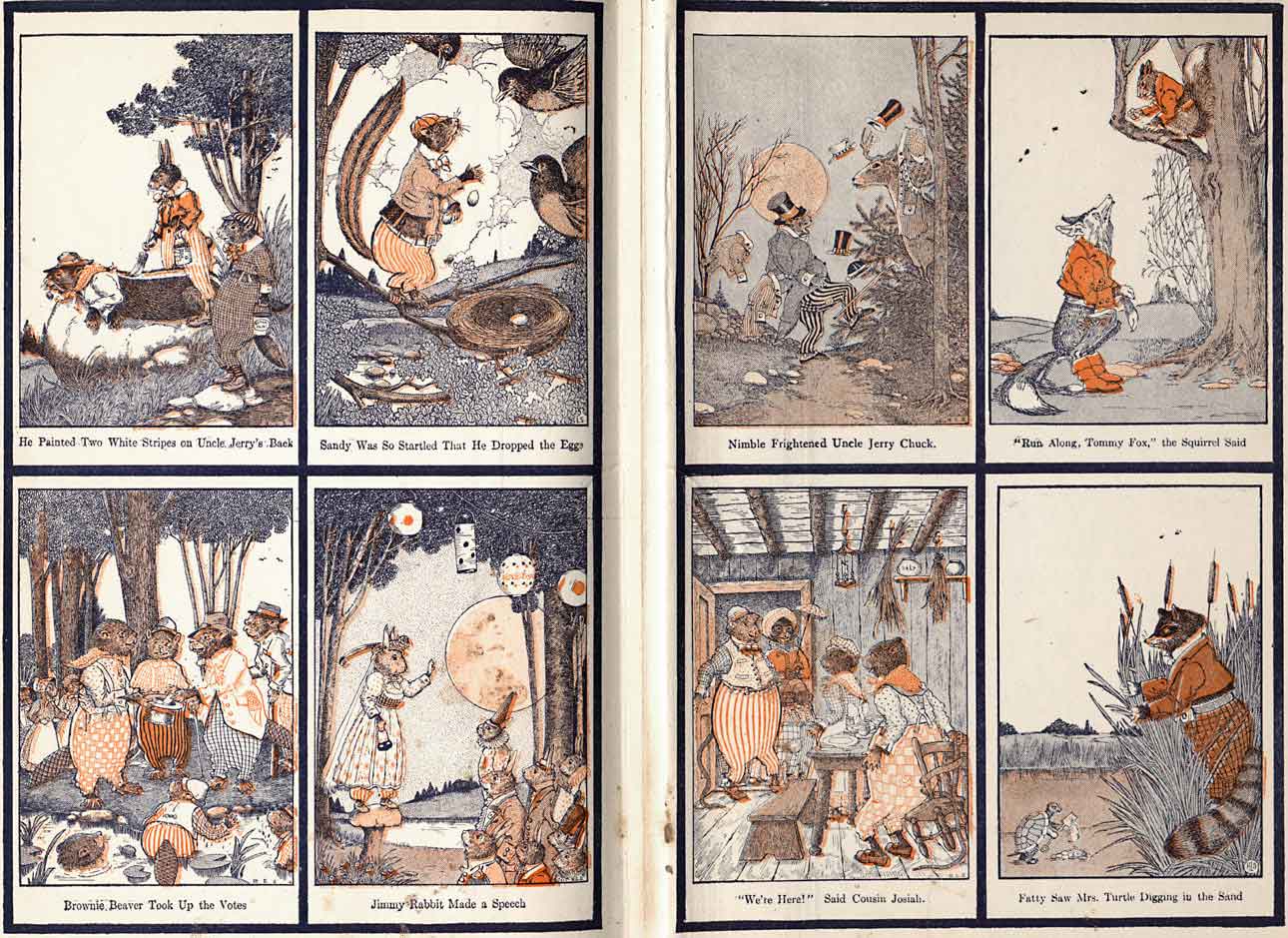 This series of animal stories for children from three to eight years, tells of the adventures of the four-footed creatures of our American woods and fields in an amusing way, which delights small two-footed human beings.