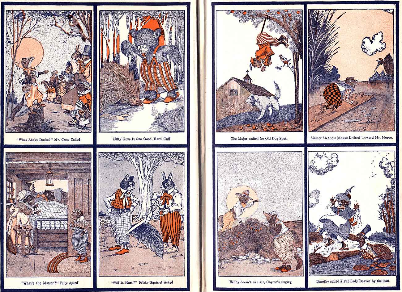 These little books for little people tell of the adventures of the four-footed creatures of our American woods and fields in an amusing way which delights small two-footed human beings; and at the same time, in the shortcomings of Cuffy Bear and his neighbors, children are quick to recognize their own faults and to take home the obvious lessons.