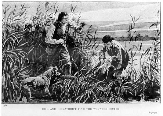 “That you, squire?” shouted Farmer Tallington from the trees beyond the hut, which now appeared before them, sombre and gloomy, half hidden by the growth.
