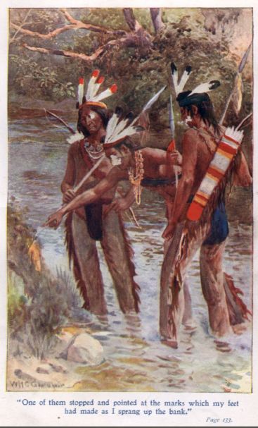 “‘The settlement has been surprised by Indians!’ he exclaimed, as soon as he could find words to speak. ‘I know the bloodthirsty nature of the savages. They don’t do things by halves, or allow a single human being to escape, if they can help it. Lads, you will stick by me; though we can do nothing, I fear, but be revenged on the Redskins. I left my wife and children down there, and I know that I shall never see them alive again.’