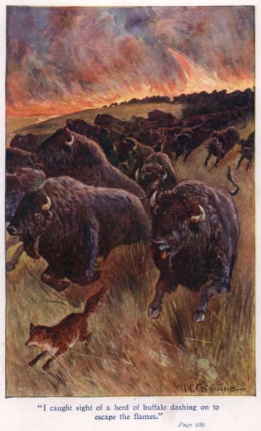 On looking round I saw a number of animals following me: straggling buffalo, deer of several descriptions, wolves, and many smaller quadrupeds. It would not do, however, to stop for a moment; so I pushed on as fast as my horse could go, and after galloping several miles I was satisfied that I had gained considerably on the fire.