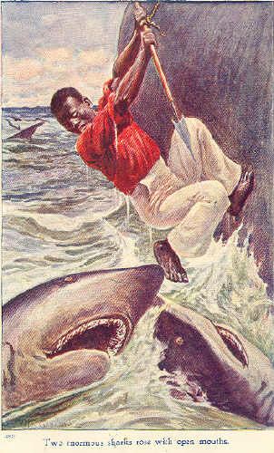 Among those who most eagerly followed the cruel sport was Tom Hulk, the boatswain’s mate. He had got a long line and a strong hook, which he threw overboard from the end of the main-yard.