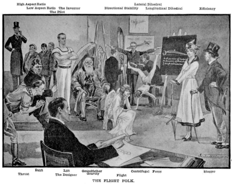 "Well," eagerly replied the Lift and the Thrust, "let's [4] be friends. Do tell us what we can do to help you to overcome Gravity and Drift with the least possible Power. That obviously seems the game to play, for more Power means heavier engines, and that in a way plays into the hands of our enemy, Gravity, besides necessitating a larger Surface or Angle to lift the Weight, and that increases the Drift."