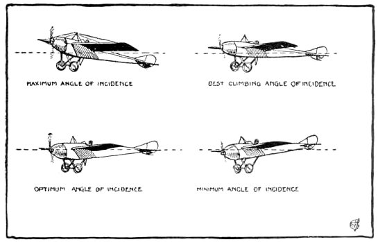 "Then, if the Pilot is green, my chance will come," said the Maximum Angle of Incidence. "For if the Angle is increased over the Best Climbing Angle, the Drift will rush up; and the Speed, and with it the Lift, will, when my Angle is reached, drop to a point when the latter will be no more than the Weight. The Margin of Lift will have entirely disappeared, and there we shall be, staggering along at my tremendous angle, and only just maintaining horizontal flight."