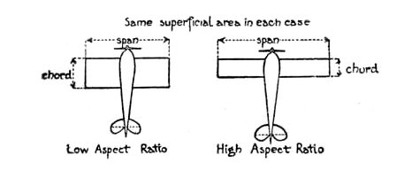 "I'm the High Aspect Ratio," he said, "and what we have got to do to help this young lady is to improve the proportion of Lift to Drift. The more Lift we can get for a certain area of Surface, the greater the Weight the latter can carry; and the less the Drift, then the less Thrust and Power required to overcome it. Now it is a fact that, if the Surface is shaped to have the greatest possible span, i.e., distance from wing-tip to wing-tip, it then engages more [5] air and produces both a maximum Reaction and a better proportion of Lift to Drift.