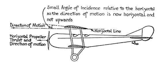 "Certainly, now it's my turn," piped the Minimum Angle of Incidence. "By means of the Elevator, the Pilot places the Aeroplane at my small Angle, at which the Lift only just equals the Weight, and, also, at which we shall make greater speed with no more Drift than before. Then we get our greatest Speed, just maintaining horizontal flight."