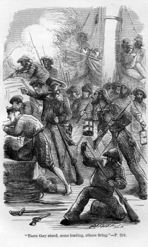 “Hurrah, lads! We have the first of it this time, and it’s my belief we hit the mounseer,” cried Reuben Cole, as he discharged his gun.