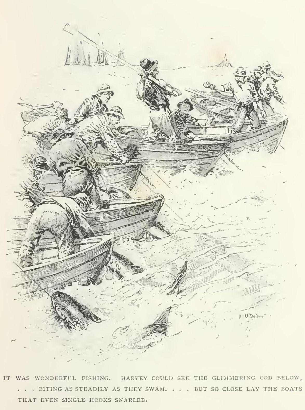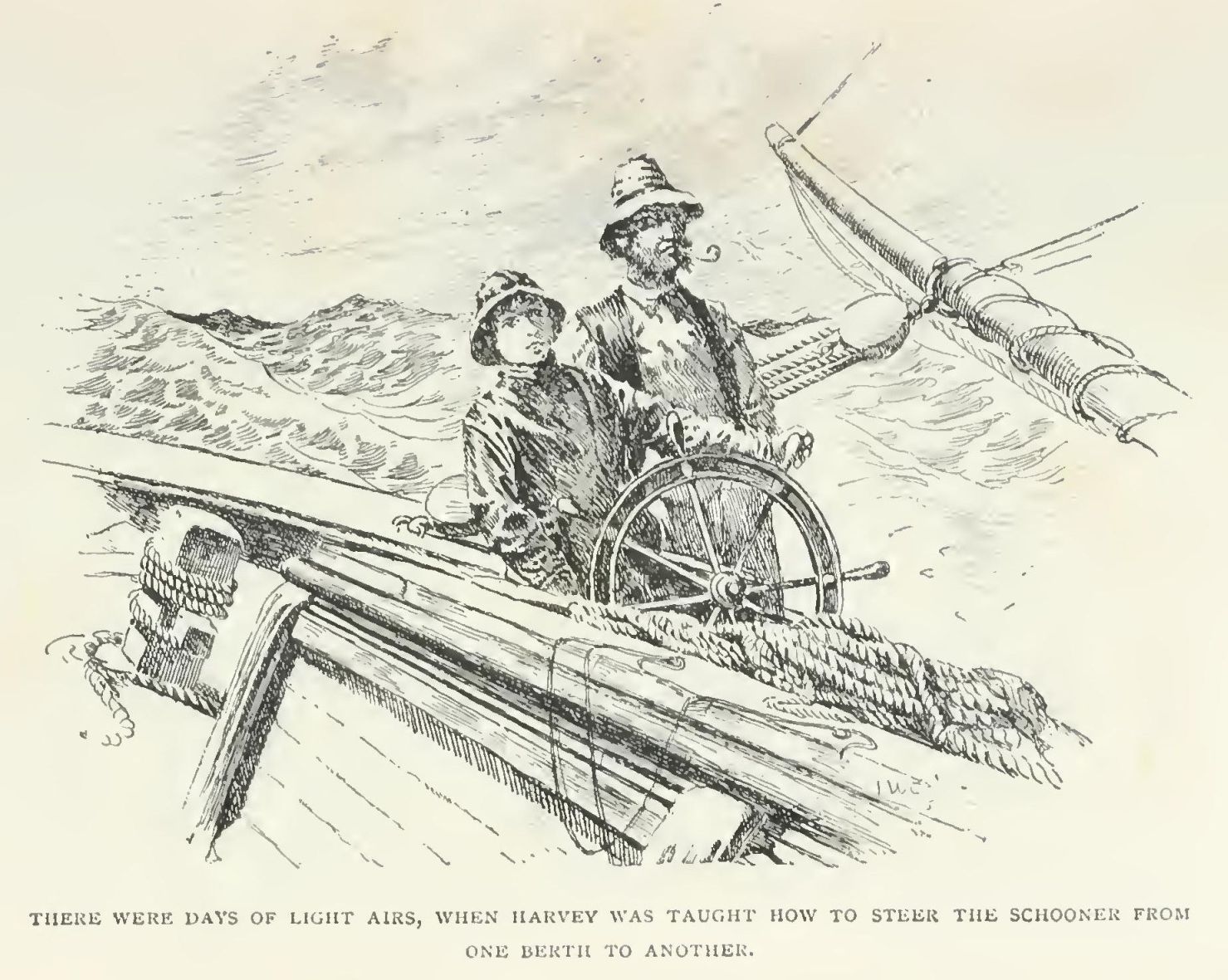 "H'm," said the shaven man, quite unmoved by the end of Harvey's speech. "I can't say we think special of any man, or boy even, that falls overboard from that kind o' packet in a flat ca'am. Least of all when his excuse is thet he's seasick."
