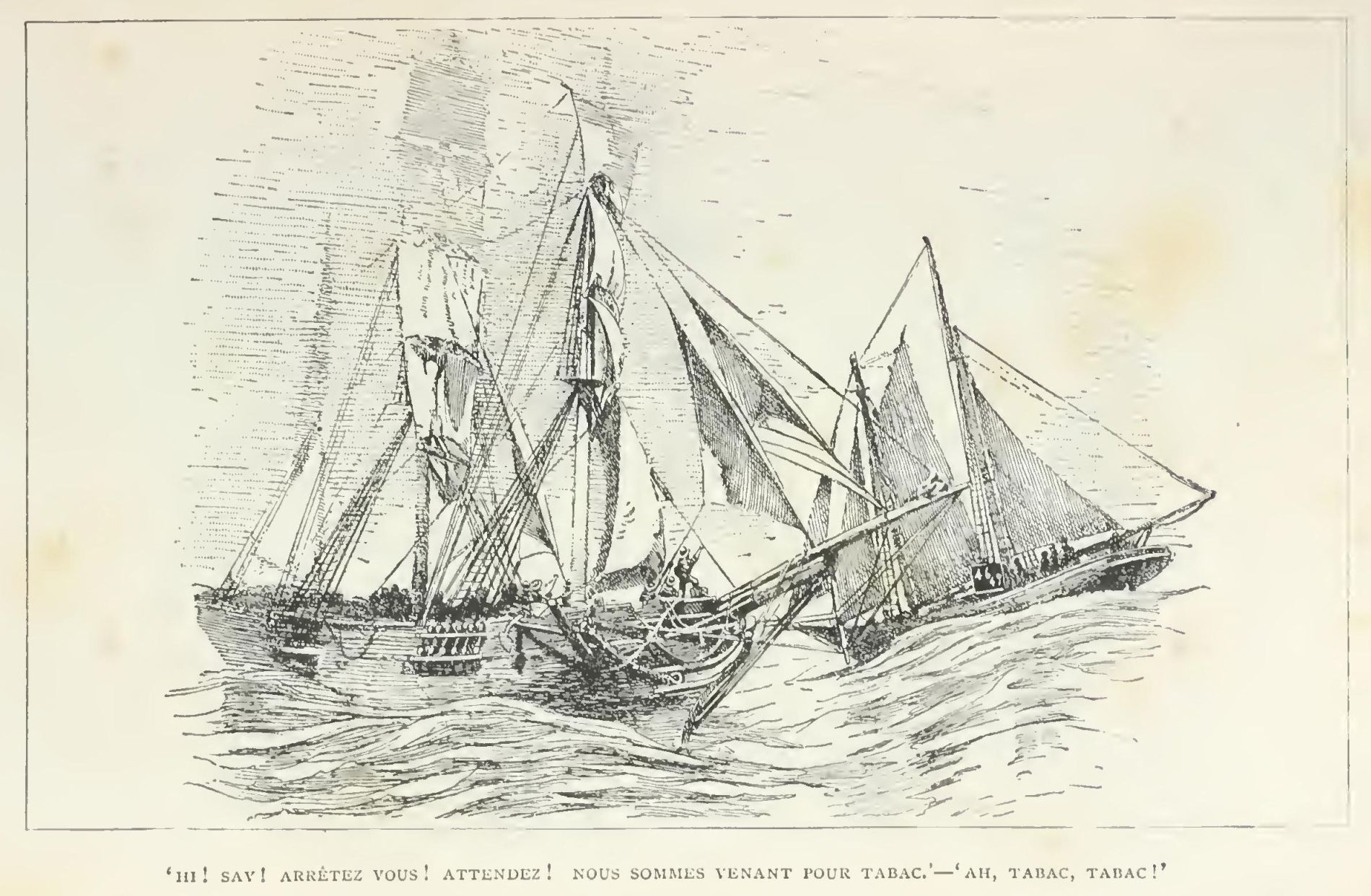 "Just in time I blow my horn, and your boat she yaw a little. Then I see you come all down. Eh, wha-at? I think you are cut into baits by the screw, but you dreeft—dreeft to me, and I make a big fish of you. So you shall not die this time."