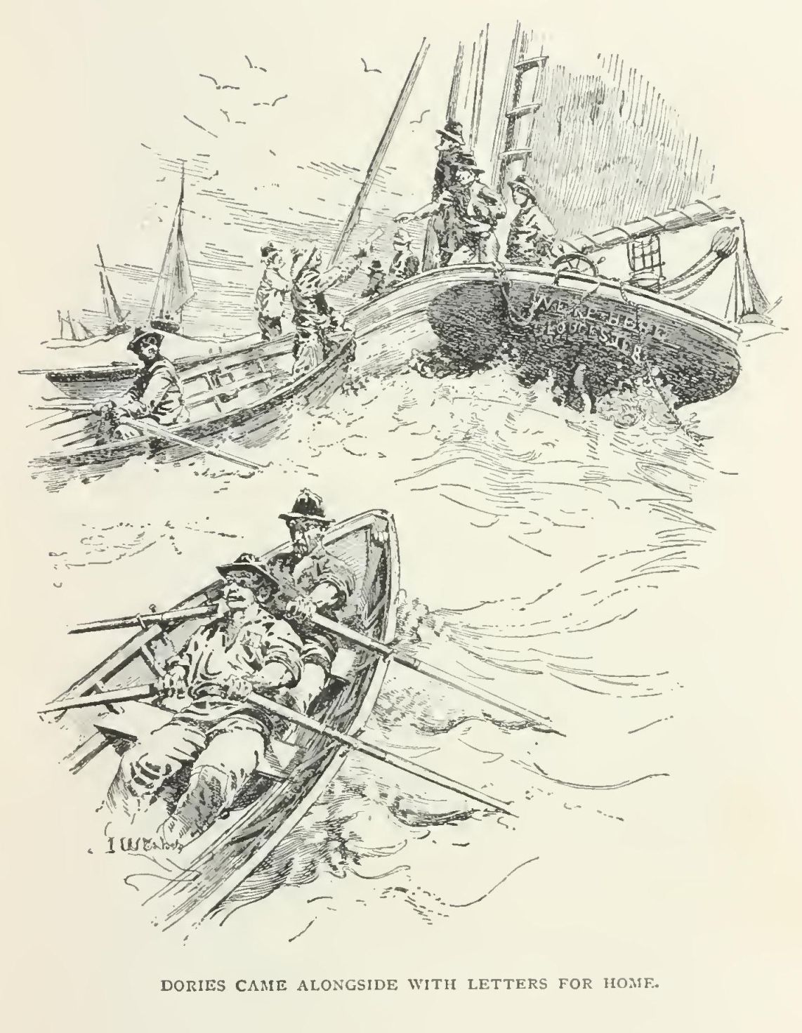 "You are with me in the dory—Manuel my name, and I come from schooner 'We're Here' of Gloucester. I live to Gloucester. By-and-by we get supper. Eh, wha-at?"