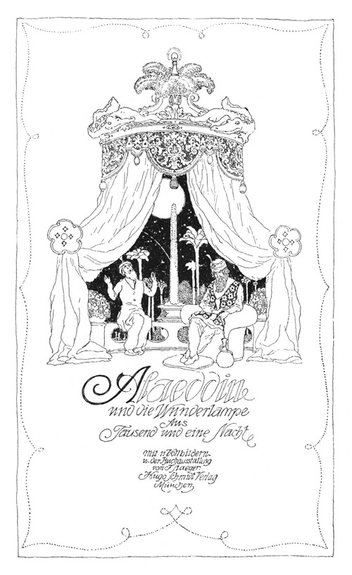 [96]Jener, an den sich der afrikanische Zauberer gewandt hatte, machte sich ein Vergnügen daraus, ihm den Weg nach Alaeddins Palast zu beschreiben, und der afrikanische Zauberer ging dahin. Als er angekommen war und den Palast von allen Seiten genau betrachtet hatte, zweifelte er nicht mehr daran, daß Alaeddin sich der Lampe bedient haben müsse, denn er wußte recht gut, daß solche Wunderwerke nur von den Geistern der Lampe geschaffen werden konnten. Voll Ärger über das Glück und die Größe Alaeddins, der sich nicht von dem Sultan unterschied, kehrte er nach dem Wirtshaus zurück, wo er abgestiegen war.