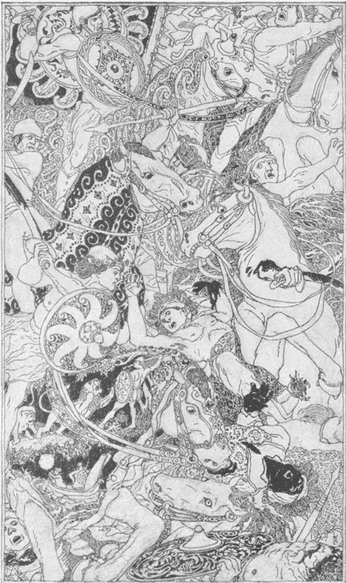 In diesem Augenblicke bemerkte der Großvezier, daß das Volk die Reiter überwältigt hatte und auf den Schloßplatz gedrungen war, ja sogar, daß einige die Mauern des Palastes an mehreren Stellen mit Leitern erstiegen und bereits anfingen, sie niederzureißen, um eine Öffnung zu machen. Er sagte daher zum Sultan, ehe er das Zeichen gab: »Herr, ich bitte dich, daß du den[102] Schritt, den du zu tun im Begriff bist, reiflich überlegen mögest. Du läufst Gefahr, deinen Palast erstürmt zu sehen, und wenn dies Unglück geschehe, so könnte es unheilbringende Folgen haben.« –