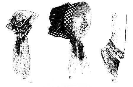 III. Engageantes of India muslin, with two rows of Mechlin lace, one above the other.
