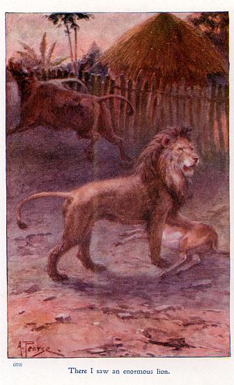There, sure enough, was an object moving slowly towards us, apparently utterly fearless of the fire. Now it began to run exactly as the ostrich does. Now it stopped and bent its head as if to feed. Presently it stretched out its neck, and a loud roar, which sounded very like that of a lion, burst from its throat.