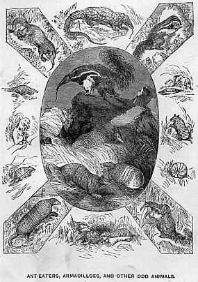 This is, perhaps, the most interesting of the groups—interesting on account of the singular animals which compose it, every one of which may be termed an odd creature. In a strictly natural classification these animals would not come together, since many of the species are unlike the others both in appearance and habits; but in a scientific point of view the absence of incisor teeth has caused them to be ranged together in a group, known as the edentata, or toothless animals.