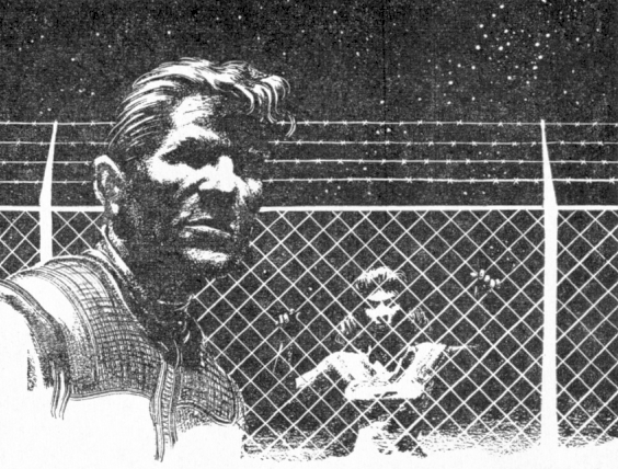 "Thanks, sergeant. I'll be seeing you next week," Phil said, and smiled. They drove between the rows of wooden buildings that lined the field, and he parked near the low barbed fence ringing the take-off zone. He turned off the ignition, and sat quietly for a moment before lighting a cigarette. Then he looked at his wife. She was staring through the windshield at the rocket two hundred yards away. Its smooth polished surface gleamed in the spotlight glare, and it sloped up and up until the eye lost the tip against the stars.