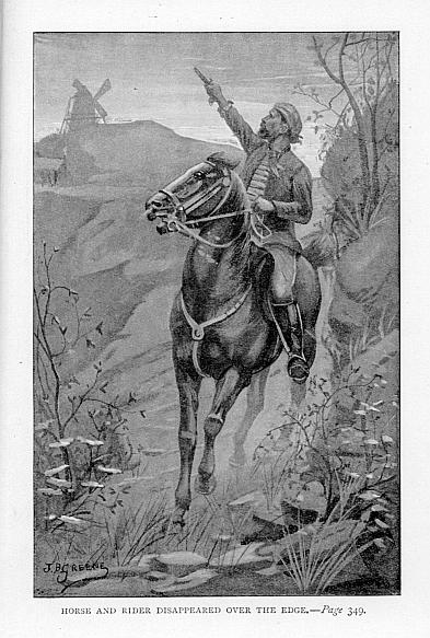 Harry and the dragoons after Gaffin’s escape galloped rapidly to Downside. He would soon have distanced them had he not feared that they might lose their way. He kept urging them to spur on with greater speed. The gate was opened, and as they approached the house a thundering sound was heard, and he caught sight of several men endeavouring to burst in the front door. The noise they were making prevented them from hearing the approach of the horses. One of them turning, however, caught sight of the dragoons, when, he shouting to his companions, they let the log fall and rushed down the steps, two or three of them as they did so firing the pieces they carried. The soldiers fired in return, when two or more of the gang were wounded. Their companions, however, dragged them off, and scrambling over the hedges, they made their escape before the dragoons could overtake them.