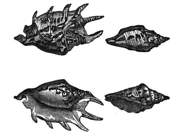 With this he gave him four shells, two young, and two grown up ones, which are called the Pteroceras Scorpio; and three others besides,[Pg 87][Pg 86] one young and two grown up ones, which go by the name of Cypraea Exanthema.