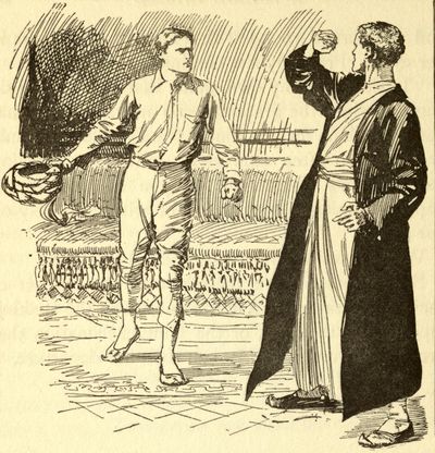 George did not answer at once, and Naoum waited[Pg 357] patiently for him to speak. The generosity of this man knew no bounds; his offer was princely, and George hardly knew what to say. He hated to refuse this thing, for Naoum's heart was evidently set upon it, and yet he could not accept. The peaceful life of a trader, or at least the peaceful life he imagined it to be, had no attraction for him, despite the wealth accruing to it, and yet how could he make this good man understand? Naoum was still awaiting his reply, and George felt that he must not delay in giving his answer; perhaps if he could gain time he might see his way to doing as his protector wished, although, at present, he did not see how. Stepping over to the good man, he wrung him by the hand.