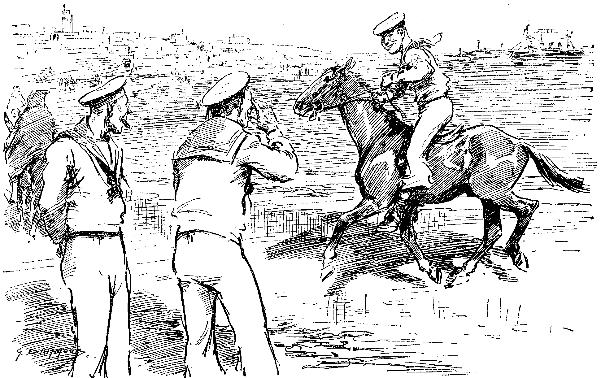 First Jack Tar Abroad (to second, very "busy riding"). "'Ulloa, Bill; looks like yer workin' yer passage."