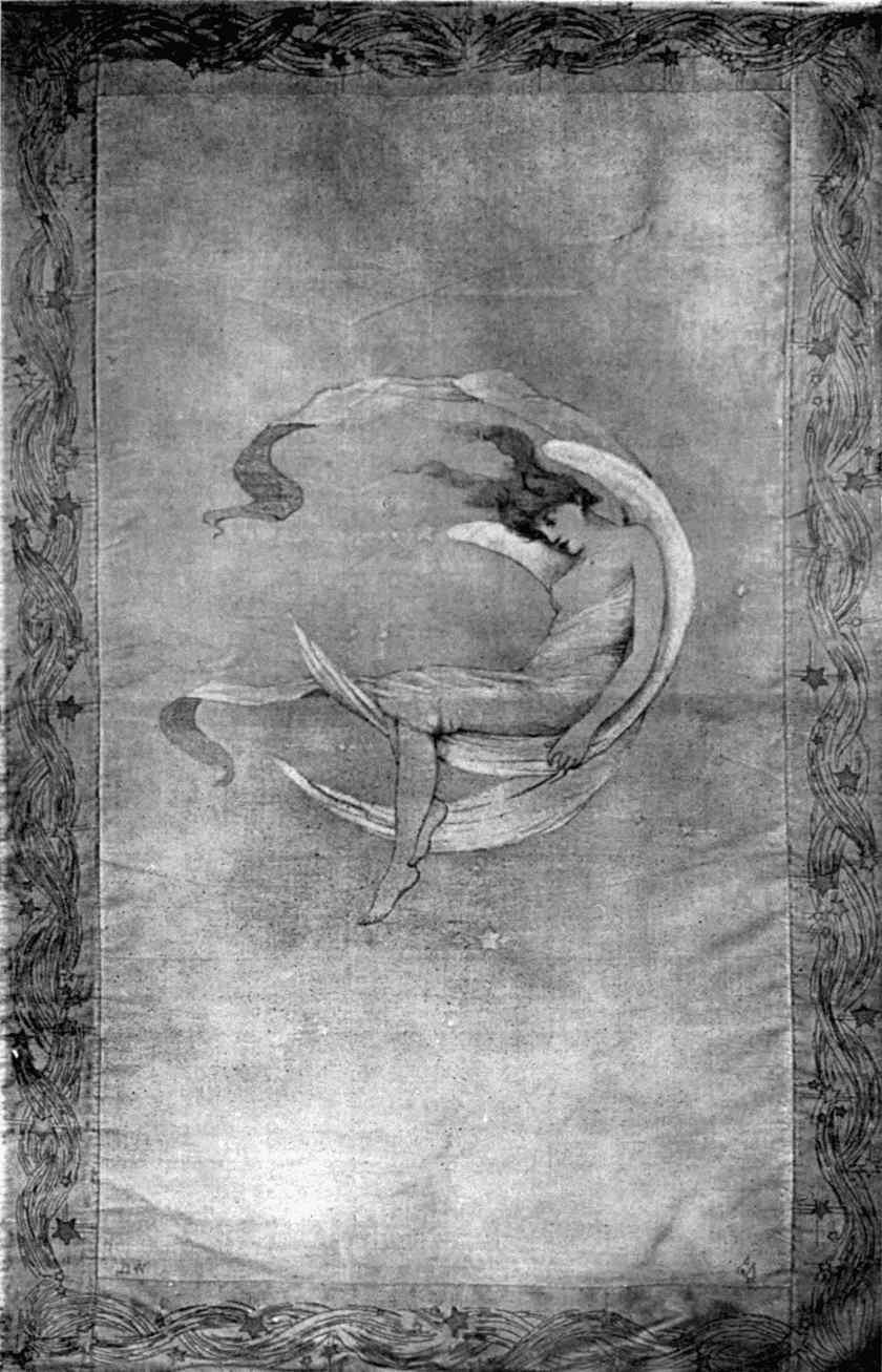But in the meantime what were we to do about our tapestries? They were costly, very costly to produce, and although we took account of the delight of their creation and put it on the credit side of our books, along with the fact that the weekly pay roll of the tapestry room went for the comfort and maintenance of the students whom we loved and cherished, I soon realized the fact that a commercial firm could not be burdened with the fads of any one member. Before I had carried this conclusion to its logical end, we had opportunities of using our skill worthily in several of the new great houses of the time. When the Cornelius Vanderbilt house was erected on Fifth Avenue and Fifty-Seventh Street we received an order for a set of tapestries for the drawing-room walls. These were executed from ideal subjects and of single figures. I remember the "Winged Moon" among them, which was an ideal figure [138] of the new moon lying in a cradle of her own wings. This was but one of the set, one or two of which we afterward made in replica for an exhibit in London. There was no lack of subjects in our background of American history. The legends and beliefs of our North American Indians were full of them, and one of the first we selected was the lovely story of "Minnehaha, Laughing Water," from Longfellow's "Hiawatha." The sketch had been sent to us by Miss Dora Wheeler, as the prize composition of the Saturday Composition Class at Julien's Studio in Paris.