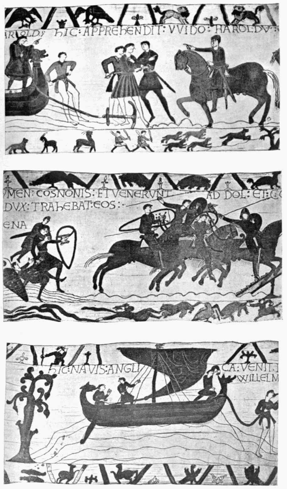 Among all our present possessions of early skill, perhaps nothing is more widely known than what is called the Bayeux Tapestry. This much venerated work is not tapestry at all, but a pictorial record in outline, done with a needle, as simply as though written in ink, at least according to our present understanding of what is known as tapestry.
