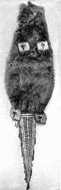 The purely decorative ability which lived and flourished before the advent of civilization lost its distinctive simplicity of character when woven [13] cloth of brilliant red flannel and the tempting glamour of colored glass beads came into their horizon, although they accepted these new materials with avidity. Porcupine quill work seems to have been no longer practiced, although a few headbands of ceremony are to be found among the tribes, and now and then one comes across a veritable treasure, an evidence of long and unremitting toil, which has been preserved with veneration.