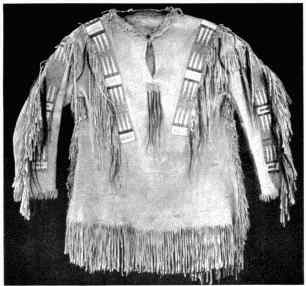 The porcupine quill embroidery of American Indian women is unique among the productions of primitive peoples, and some of the dresses, deerskin shirts, and moccasins with borders and flying designs in black, red, blue, and shining white quills, and edged with fringes hung with the teeth and claws of game, or with beautiful small shells, are as truly objects of art as are many things of the same decorative intent produced under the best conditions of civilization.